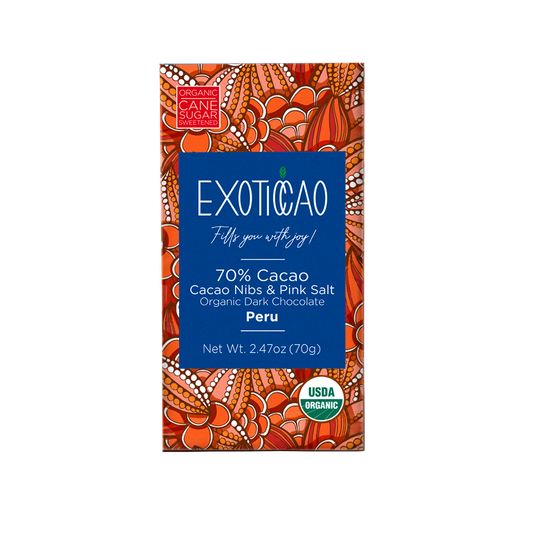 Cacao Nibs & Pink Salt Organic Dark Chocolate Bar