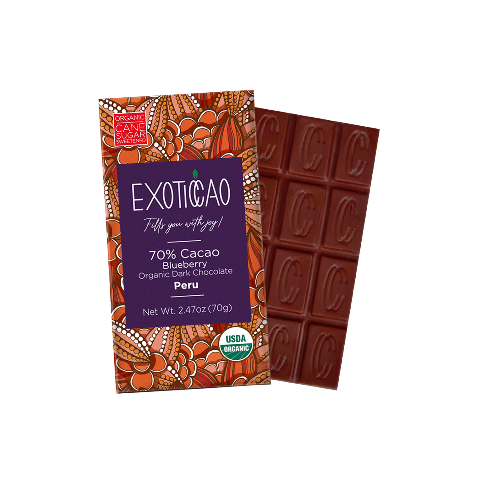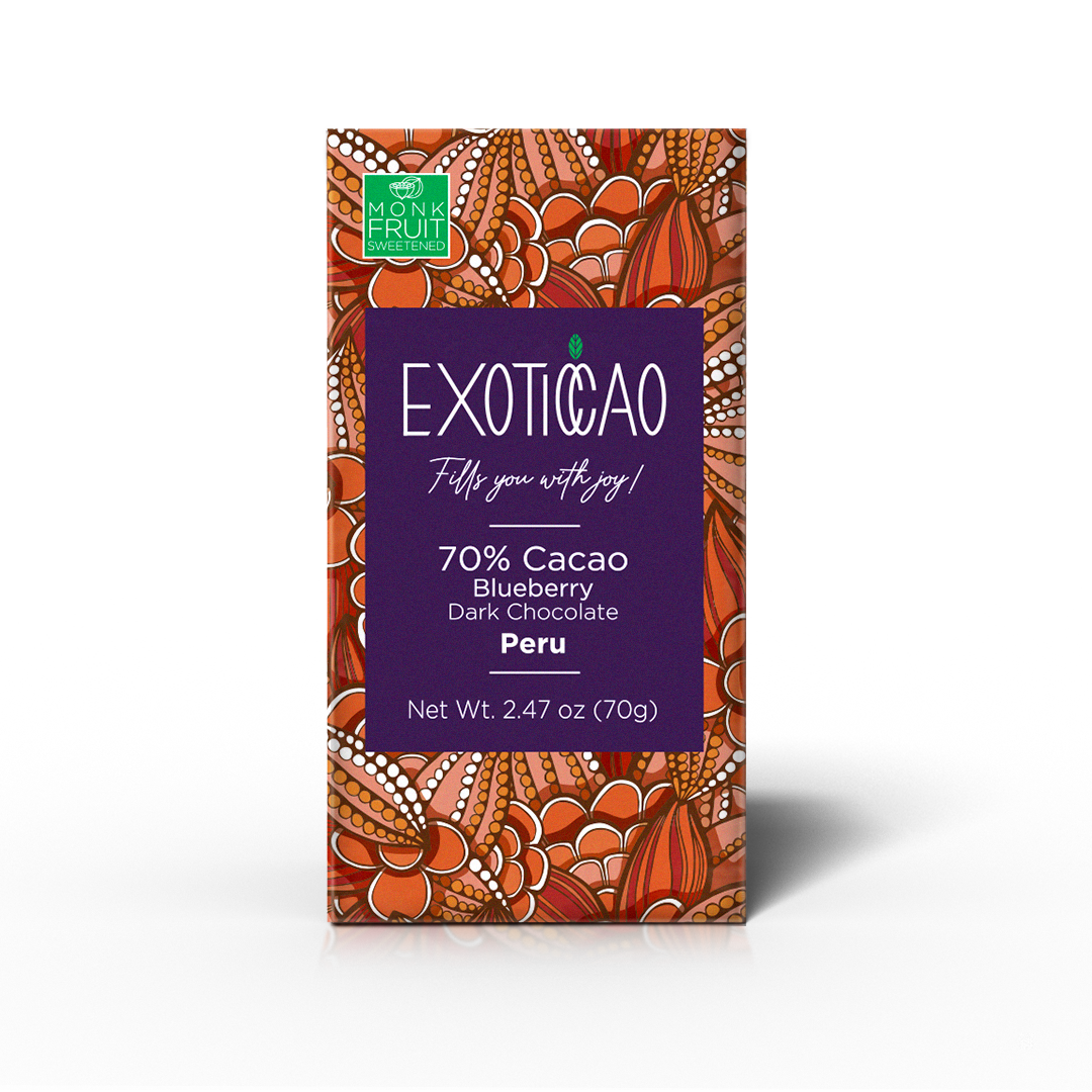 Exoticcao brings this Blueberry Dark Chocolate from its origins, the magical formula that leads you to connect with yourself and activate your energy of joy and vitality. Extremely energetic, delicious, and exotic, our Dried Blueberries are coated in delicious chocolate for a fresh taste!*