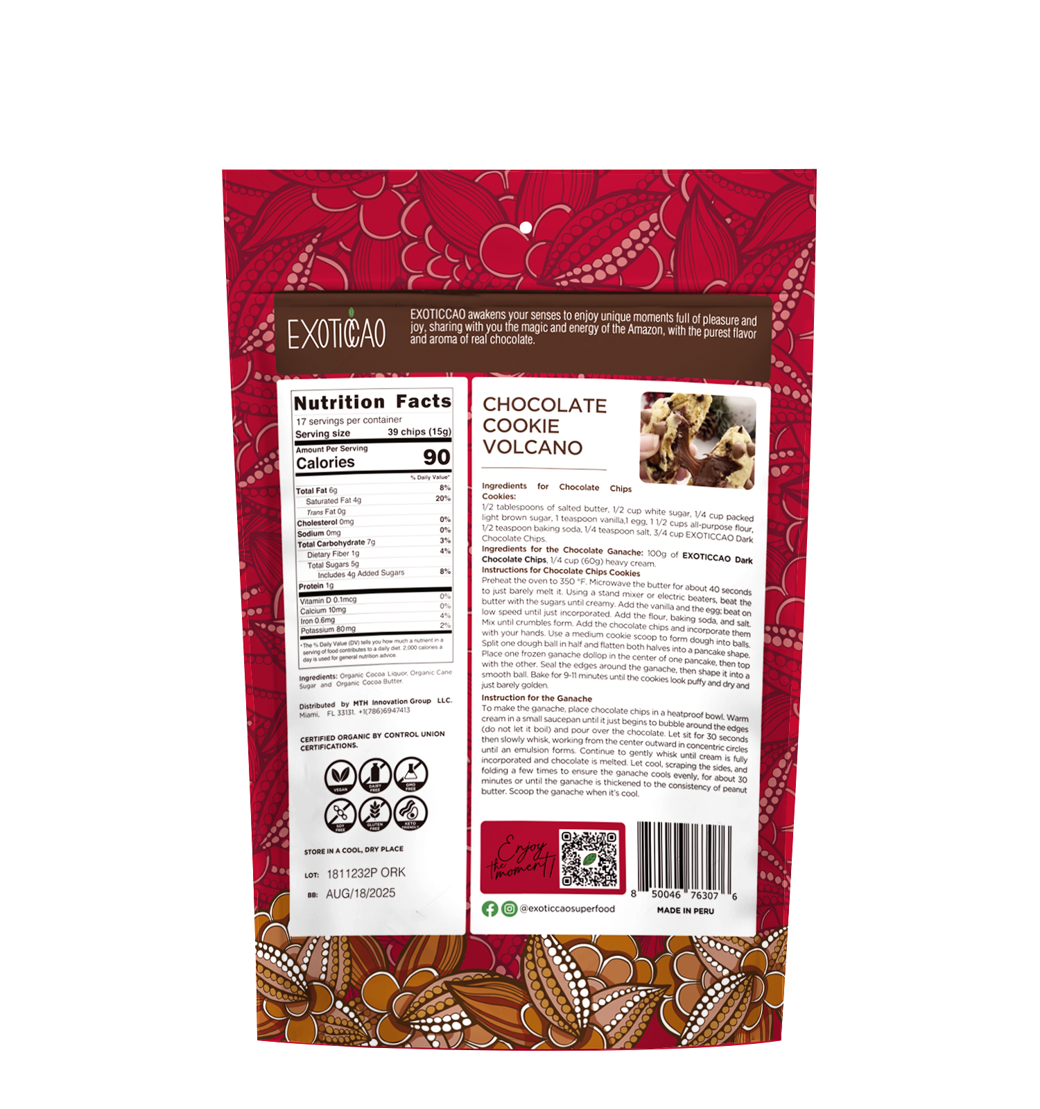 Exoticcao brings magical, happy energy into a Baking and Snacking Chip format, delivering rich, intense chocolate with low but balanced acidity and bitterness. Ideal to share, give as a gift or simply indulge in a treat! Ideal for baking, ice cream making, confectionery applications, and new Exotic creations. Create and taste!*